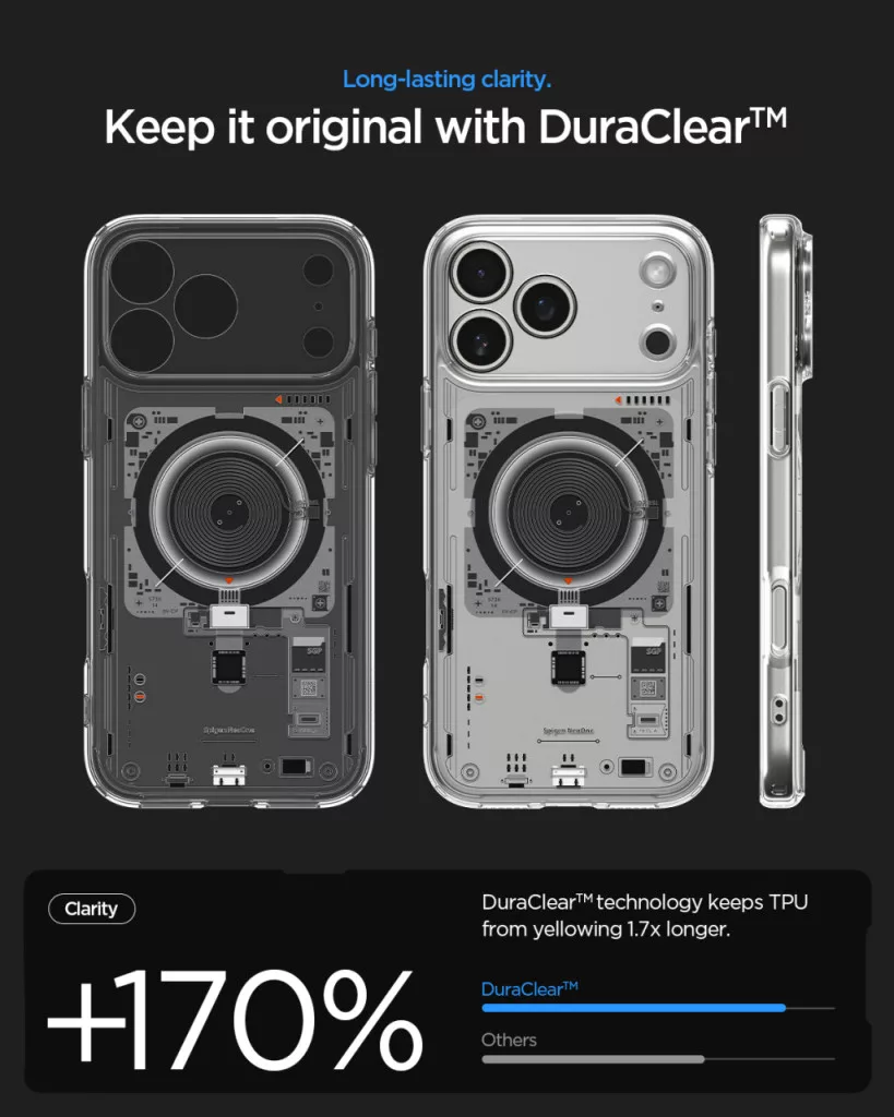 A Spigen Ultra Hybrid Mag tok a népszerű Ultra Hybrid sorozat legújabb fejlesztése, amely kiterjeszti a klasszikus átlátszó tok védelmét mágneses technológiával. Ez a tok integrál egy mágneses gyűrűt, ami kompatibilis az Apple MagSafe technológiájával, így lehetővé teszi a gyors és biztonságos mágneses töltést, valamint a különféle MagSafe tartozékok használatát anélkül, hogy le kellene venni a tokot.