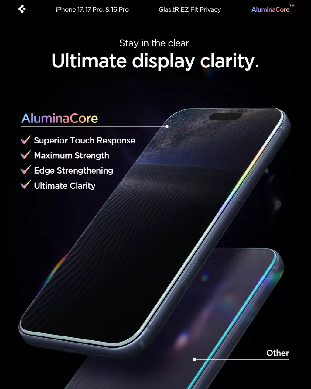A Spigen GLAS.tR EZ Fit Privacy használatával azok is megbarátkozhatnak, akik eddig tartottak a védőüveg felhelyezésétől. A gyártó forradalmi újításának köszönhetően egy keret segítségével pontosan és egyszerűen lecserélheti Ön is készüléke kijelzőjén a védőüveglapot.