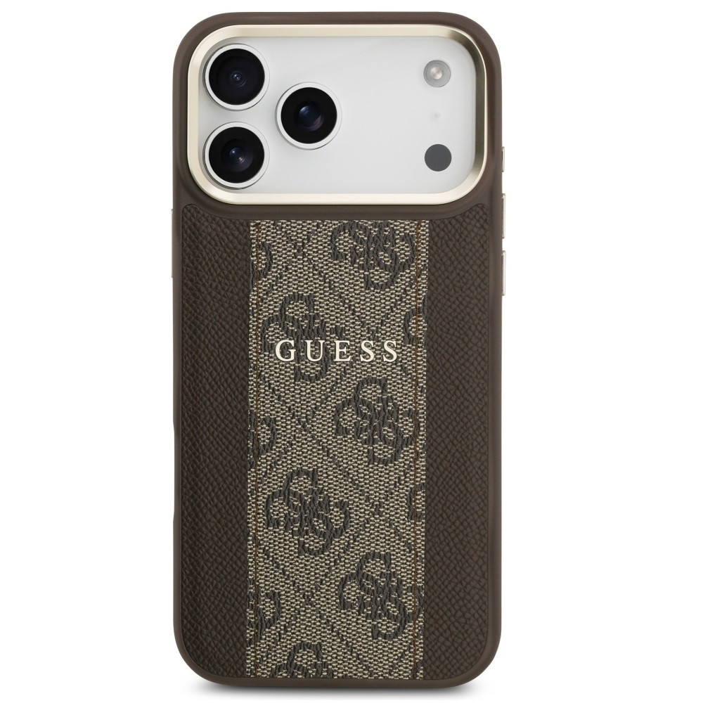 Guess 4G Stripe Apple iPhone 17 Pro MagSafe tok kameravédő kerettel, barna-arany