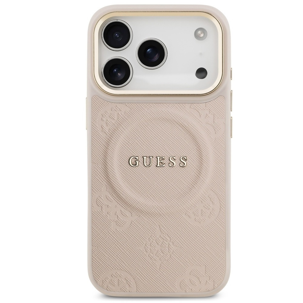 Guess Peony Hot Stamp Apple iPhone 17 Pro MagSafe tok kameravédő peremmel, rózsaszín-arany