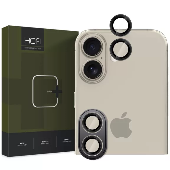 Apple iPhone 16 / 16 Plus, Kamera lencsevédő fólia, ütésálló fólia, Tempered Glass (edzett üveg), alumínium keret, Camring Pro Plus, fekete