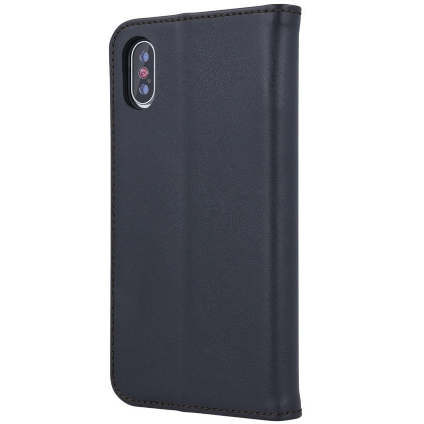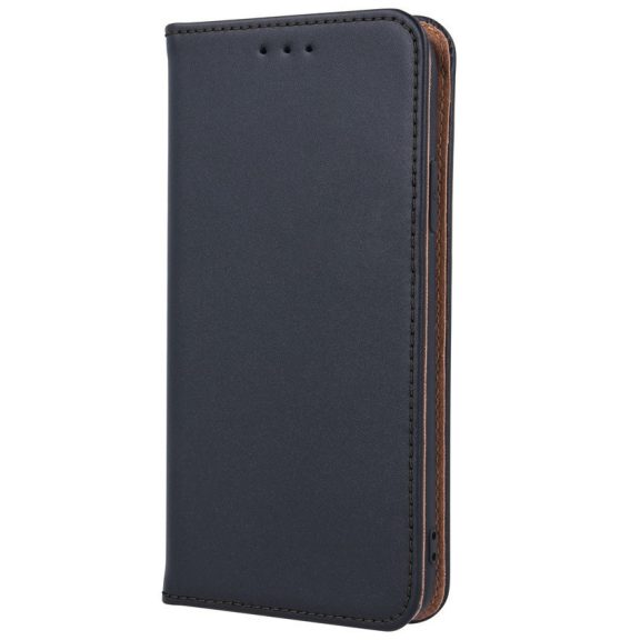 Apple iPhone 16, Oldalra nyíló tok, valódi bőrtok, stand, Smart Pro, fekete
