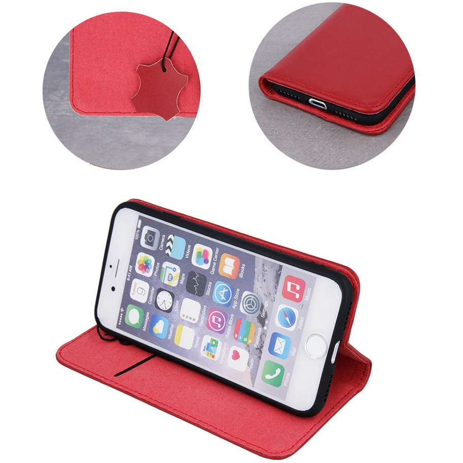 Apple iPhone 16 Pro Max, Oldalra nyíló tok, valódi bőrtok, stand, Smart Pro, piros