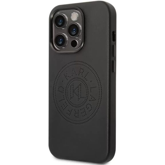Apple iPhone 14 Pro Max, Műanyag hátlap védőtok + szilikon keret, bőrhatású hátlap, Karl Lagerfeld logo minta, Karl Lagerfeld Leather Perforated Logo, fekete